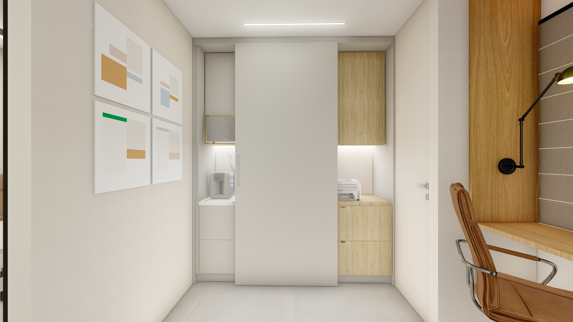 Neste projeto, cuidamos de todas as etapas do desenvolvimento: desde o projeto de arquitetura e design de interiores, passando pela execução completa da obra, até a marcenaria personalizada, garantindo um espaço corporativo integrado, sofisticado e pronto para uso.