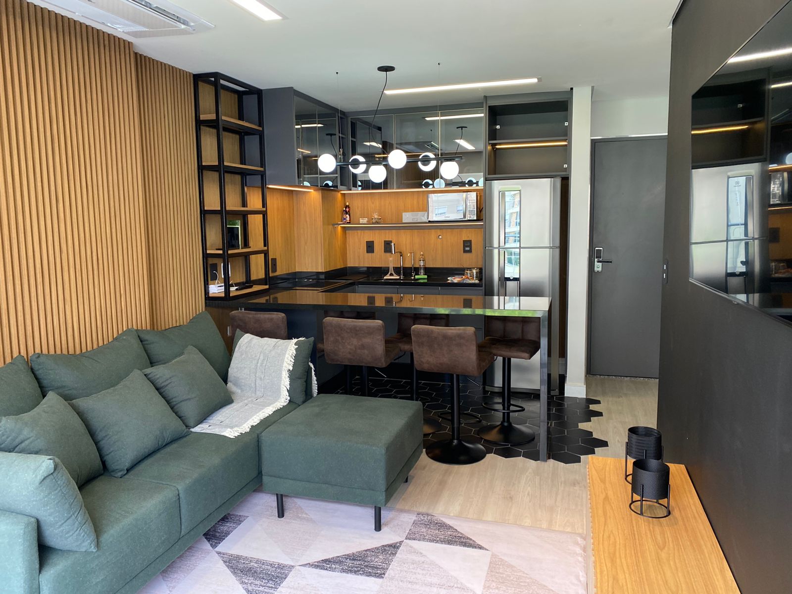 Este studio decorado é a prova de que, com um projeto de arquitetura bem planejado, é possível unir sofisticação, funcionalidade e personalidade — mesmo em espaços compactos.